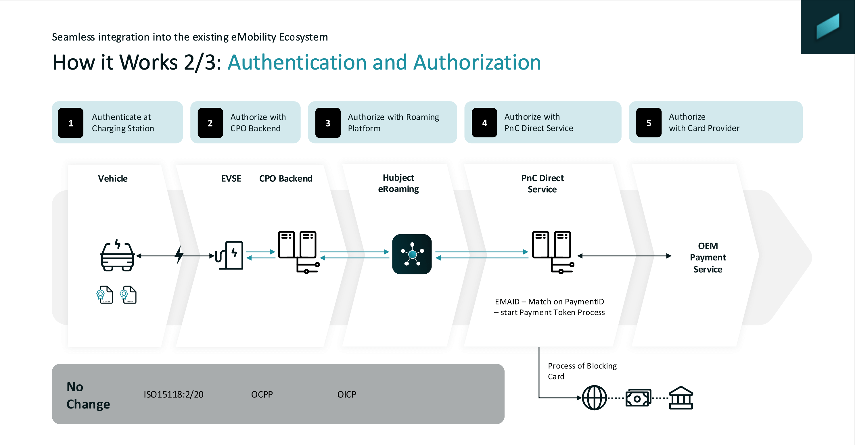 Using the provider ID inside the E-Mobility Account Identifier (EMAID), the CPO’s backend – also known as Charge Point Management System (CPMS) – contacts the correct MSP to confirm that the account hasn’t been suspended or cancelled. This is a crucial business step: no CPO wants to deliver energy without knowing they’ll be paid for it.